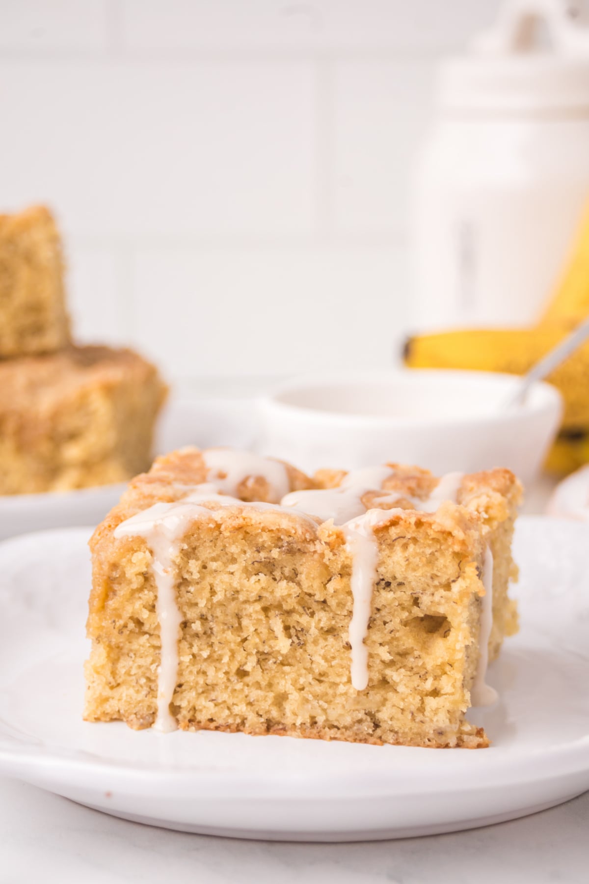 - Soft and moist texture: The bananas keep the cake tender and never dry
