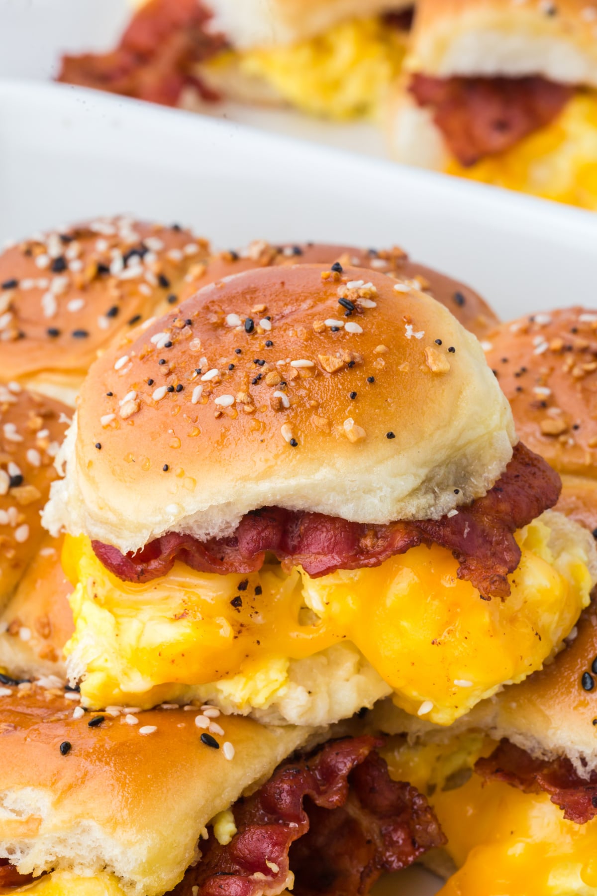 - Kid-friendly: A cheesy breakfast with soft buns, fluffy eggs and crispy bacon everyone will enjoy