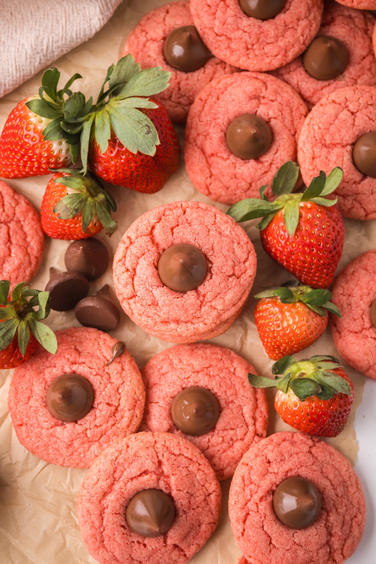 These Cookies With Hershey Kisses are soft, chewy, and bursting with sweet strawberry flavor in every bite. Each cookie is topped with a rich chocolate kiss that melts slightly into the center for the perfect finish. They're fun, colorful, and incredibly easy to make. Whether for holidays or everyday treats, these cookies are guaranteed to stand out.