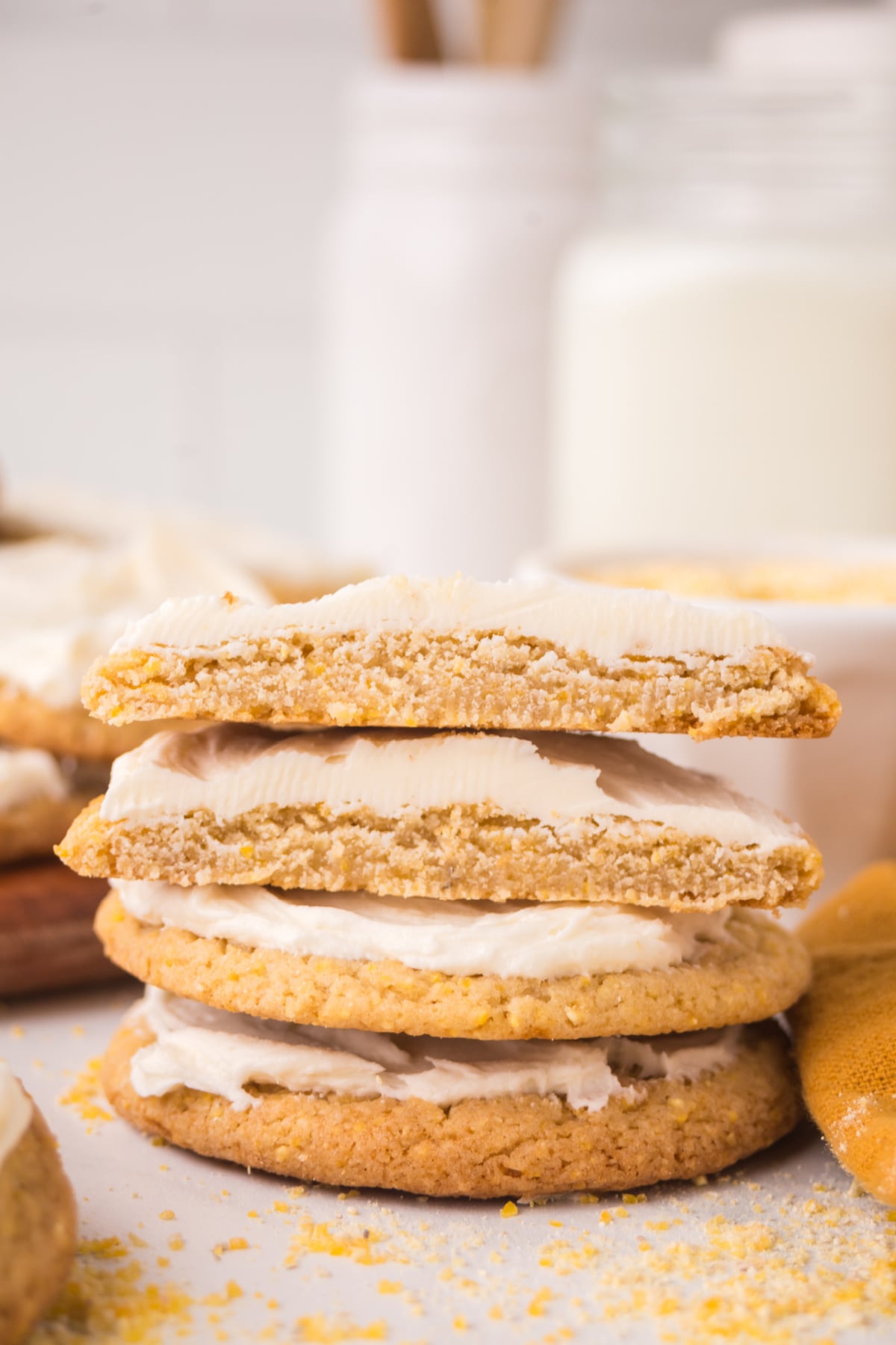 These cornbread cookies taste just like a sweet and buttery cornbread muffin. The honey butter frosting ties the flavors together since there's no honey in the cookie dough.