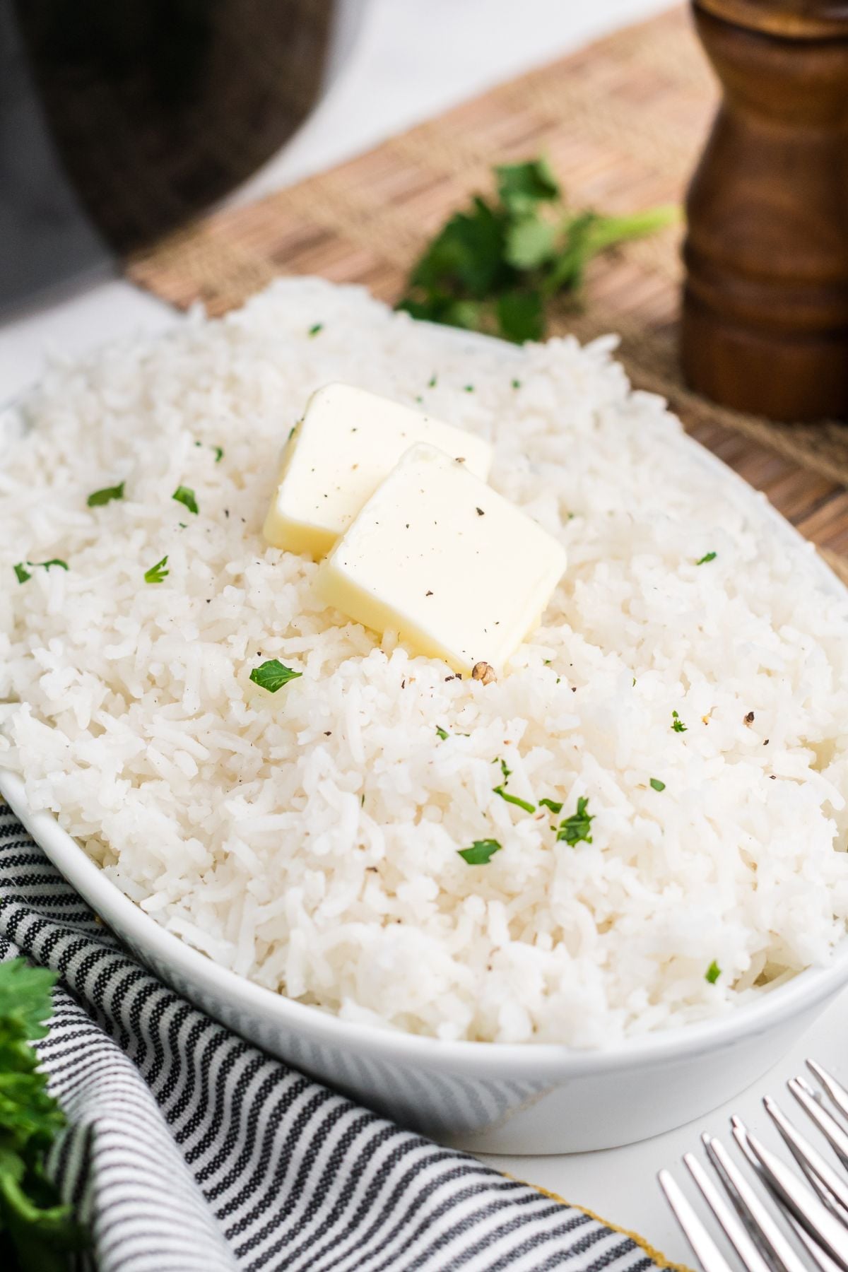 - Easy cleanup: Generously greasing the pot with butter helps to make cleanup a breeze, so there's no rice stuck inside it.