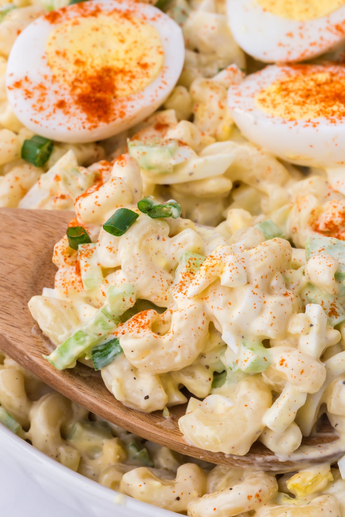 The creamy dressing, tender macaroni, crunchy celery, and plenty of eggs combine for a great dish that will satisfy everyone's tastebuds. It's the perfect addition to potlucks, BBQs, Easter spreads or cozy family dinners.