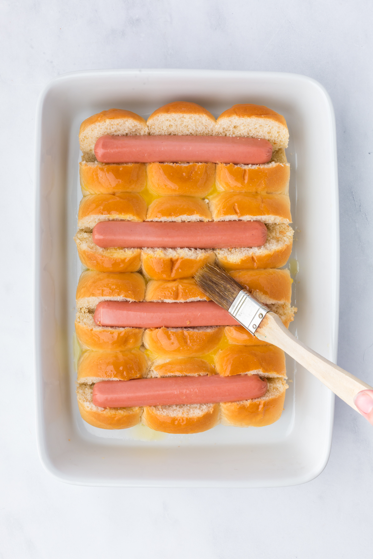 - Add seeds: After you brush on melted butter quickly sprinkle on sesame or poppy seeds for a classic hot dog bun look