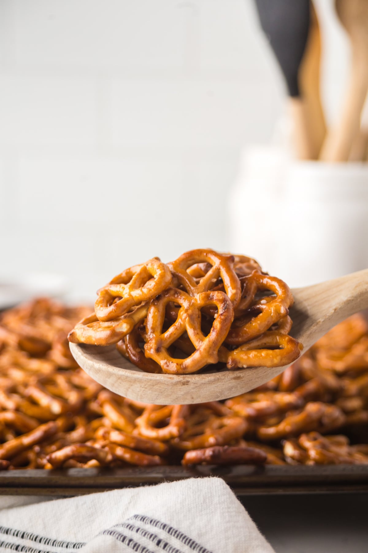 - Fold pretzels gently: This keeps the pretzels from breaking while covering them in the sweet and spicy glaze.