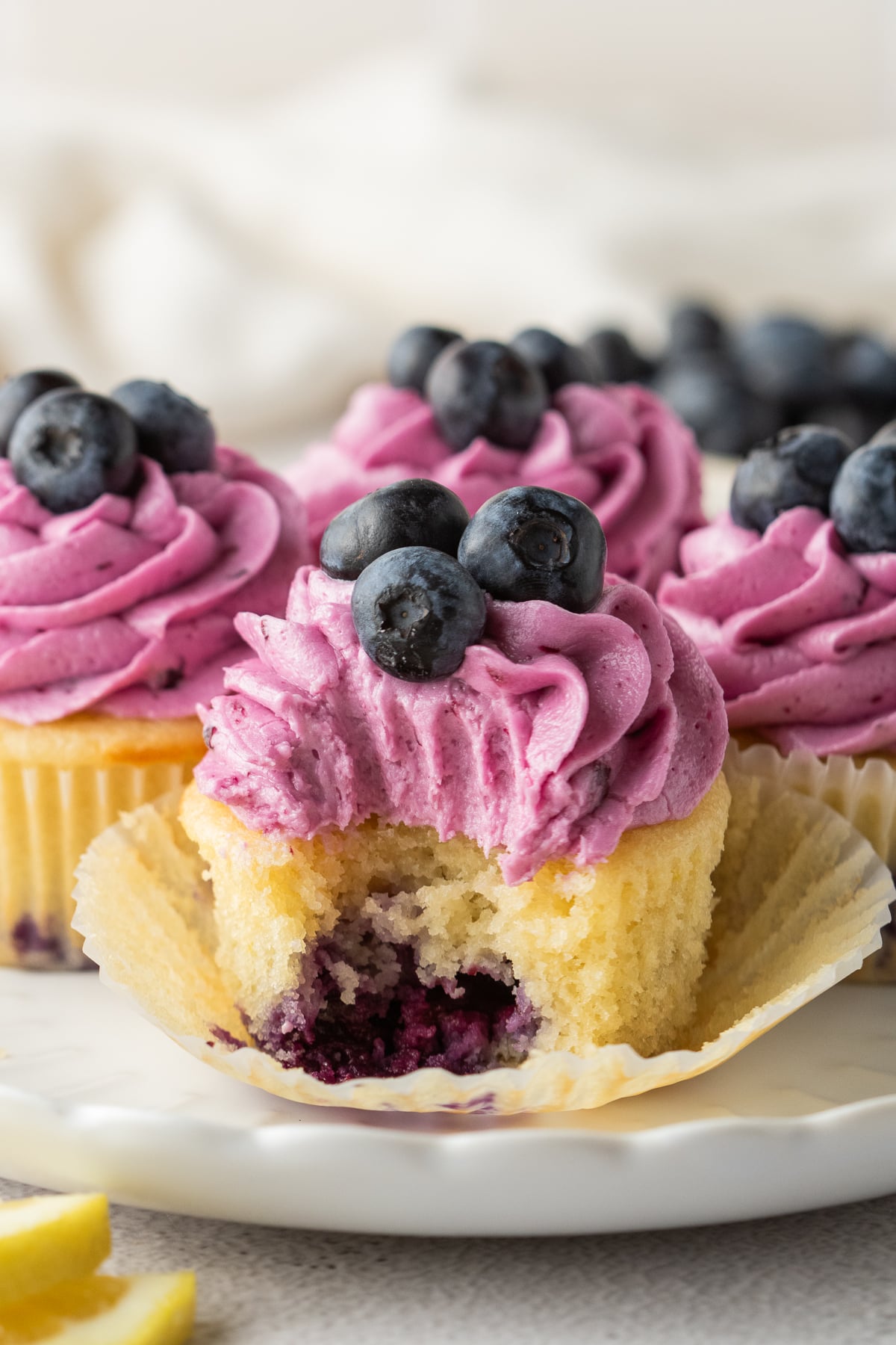 The best part about this lemon blueberry cupcake recipe is the authentic blueberry and lemon flavors. I use fresh lemon juice, lemon zest, and blueberries in both the cupcake batter and the frosting. This makes it taste as fresh and bright as possible, making it even tastier and enjoyable. You'll love that perfect bite of fluffy frosting and soft cake.