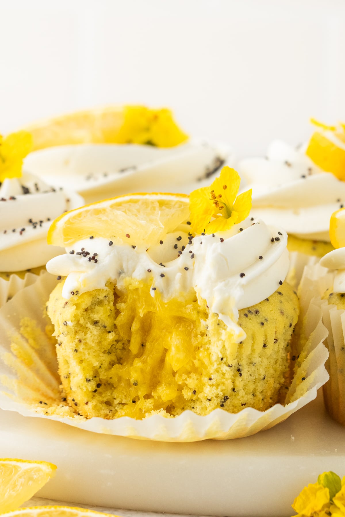 - Garnish each cupcake with a sprinkle of poppy seeds, a thin slice of lemon, or edible flowers for an elegant finish.