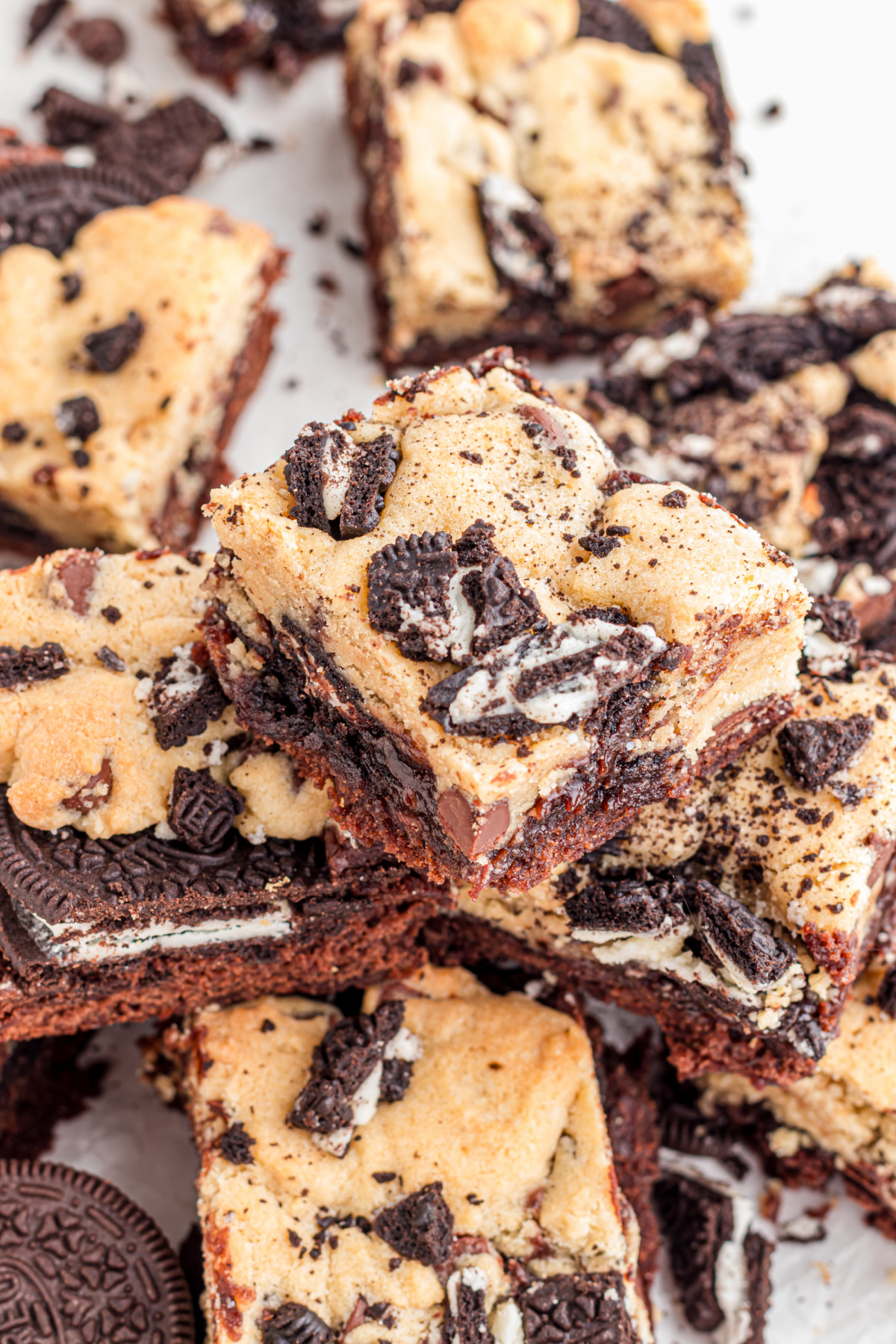 This recipe is one of my favorite go-to desserts when I need something guaranteed to impress. The layers bake together beautifully, from fudgy brownie to soft cookie to crunchy Oreo. It's simple enough for a weeknight treat but impressive enough for parties.