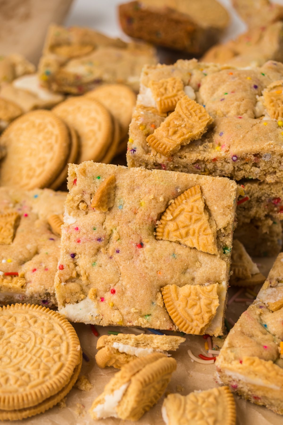 - Birthday cake Oreo bars: Use birthday cake Oreos for extra fun flavor