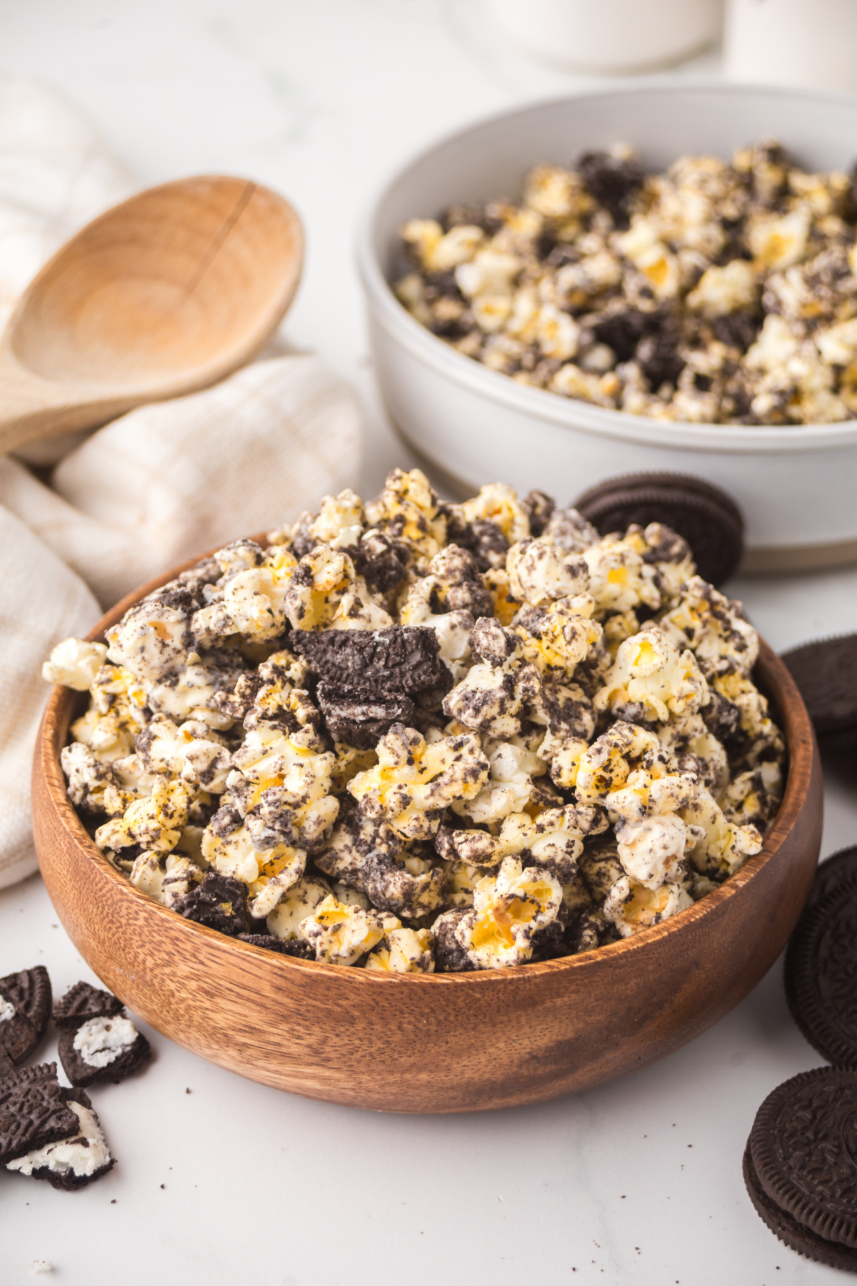 This is one of those easy recipes that looks festive and fun without taking much effort at all. Every bite tastes like an Oreo dessert with just enough popcorn to keep it light and snackable.