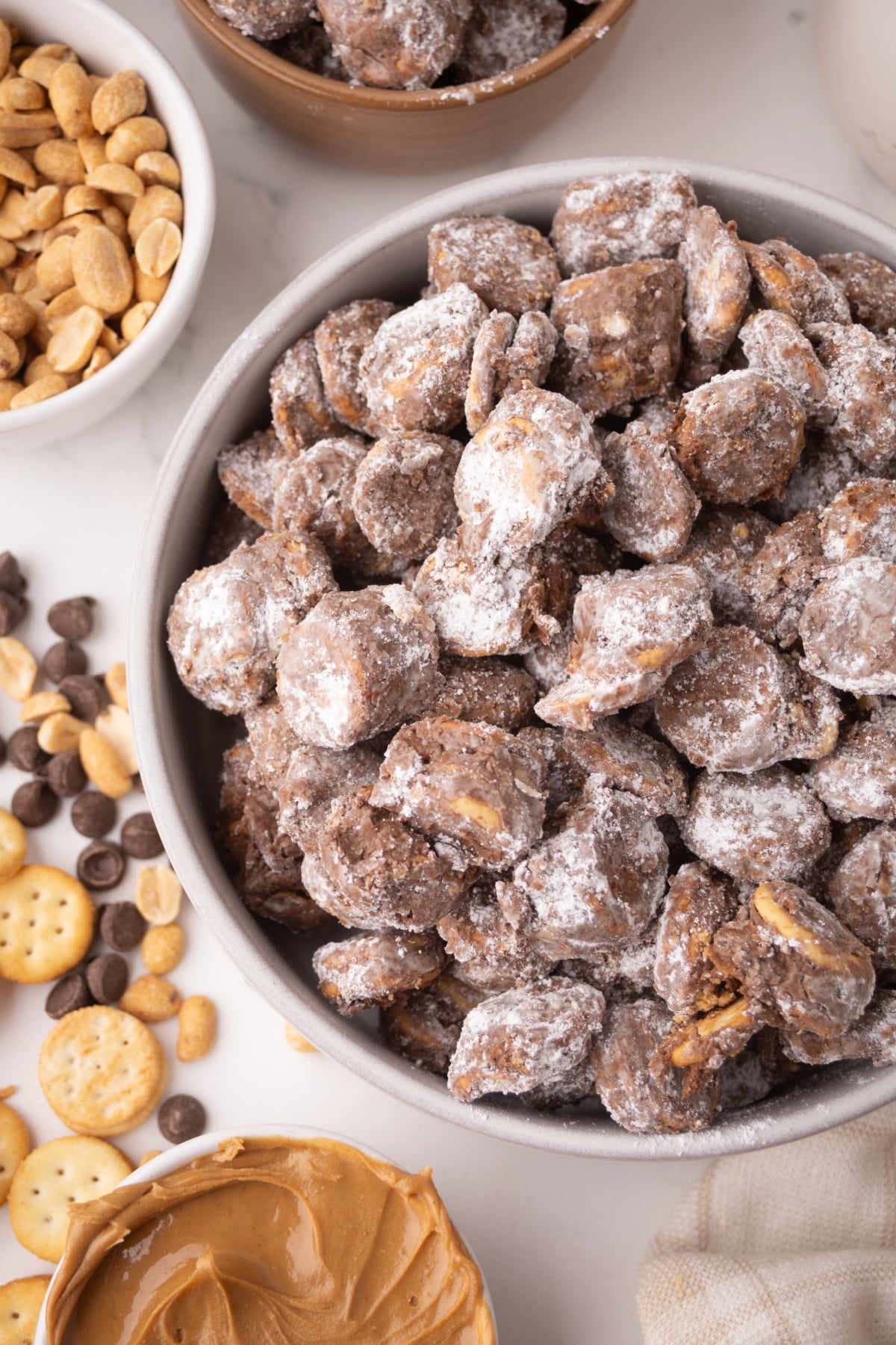These Ritz Muddy Buddies are a sweet and salty snack dream come true. Buttery peanut butter Ritz crackers are coated in smooth chocolate and finished with a dusting of powdered sugar for the perfect bite. They're incredibly easy to make and completely addictive. Perfect for parties, holidays, or everyday snacking, this recipe never lasts long.